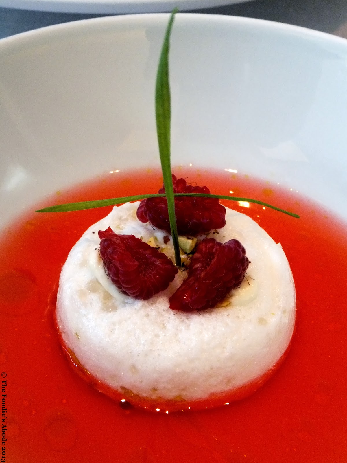 While this was a well-intentioned contrast to the indulgence of the preceding courses, the dessert as a whole didn't really do very much for us. The combination of raspberry and rhubarb made the overall taste much too acidic, and the main tapioca 'soufflé' was astonishingly tasteless. Furthermore, its texture was somewhat strange - more like a foamy mousse than soufflé - and taken together with the watery pool of raspberry sauce caused it to become rather soggy and even marshmallow-like to the palate. Quite disappointing indeed. I did appreciate other details though - in particular, the pepper cream for its mild kick to the palate, the crunchy freeze-dried rhubarb bits and chopped pistachios, and the ever so subtle aroma of lemongrass wafting through each mouthful (probably infused into the sauce or cream). The crispness of this dessert was evident, but I would have liked a greater sensitivity towards the harmony of flavours and textures. I thought that this was a bit of a hotchpotch that looked somewhat better than it tasted - didn't help either that it was one of the dishes that came at a supplement!